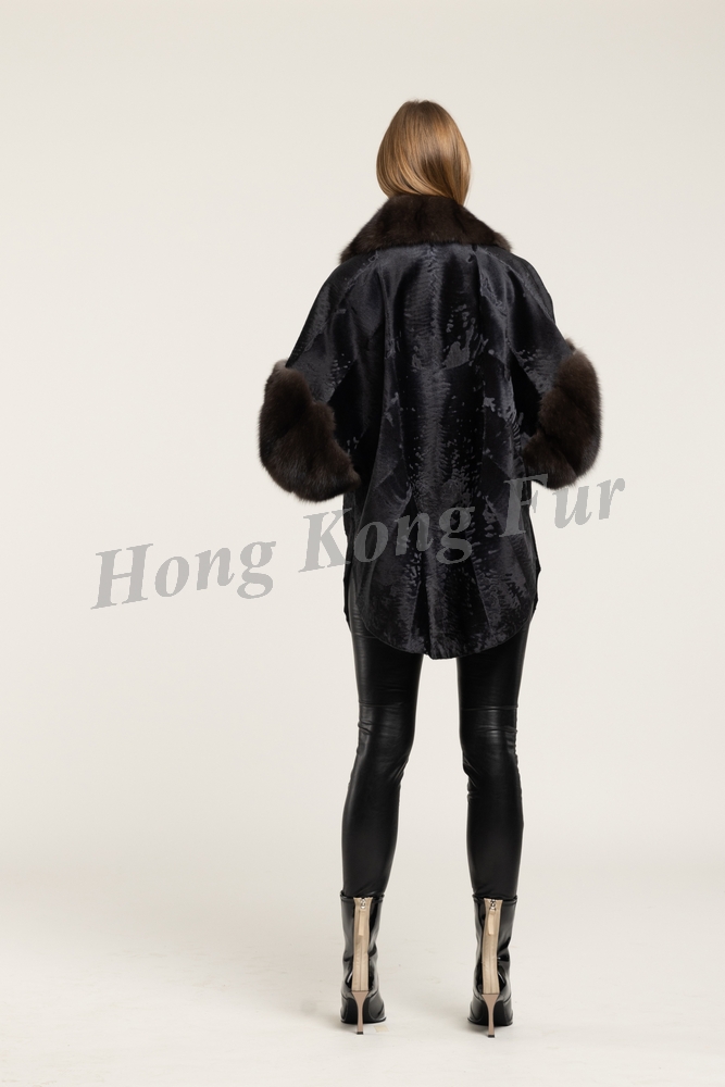 DYED GREY RUSSIAN BROADTAIL PONCHO WITH RUSSIAN SABLE NOTCH COLLAR/CUFF