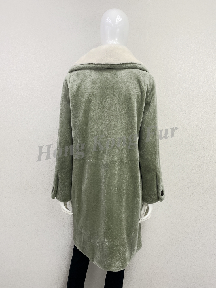 LT. KHAKI SHEARED F. MINK JACKET WITH PEARL F. MINK TOP COLLAR/ PATCH POCKET