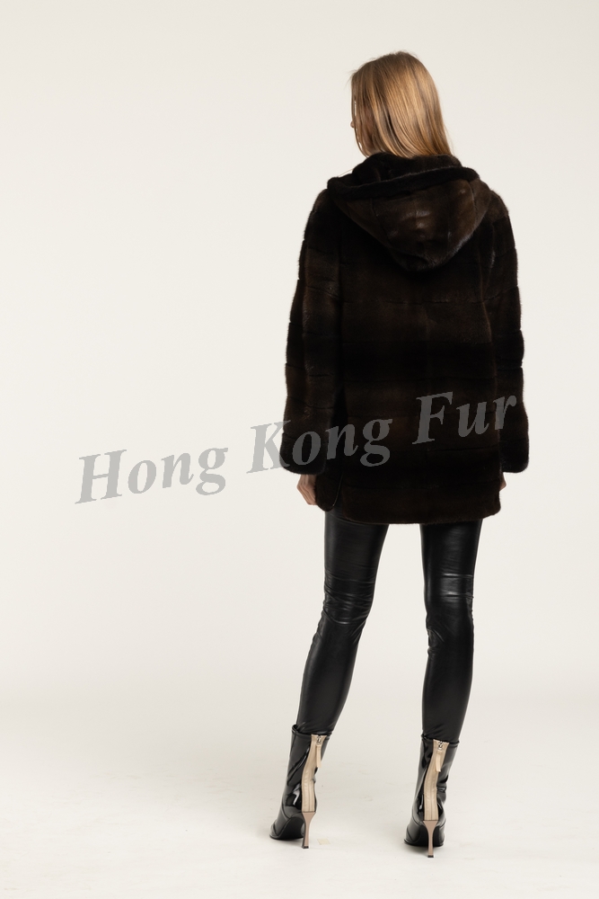 OLIVE GREEN MALE MINK W/SUEDE HOR. JACKET WITH HOOD/ZIP FRONT