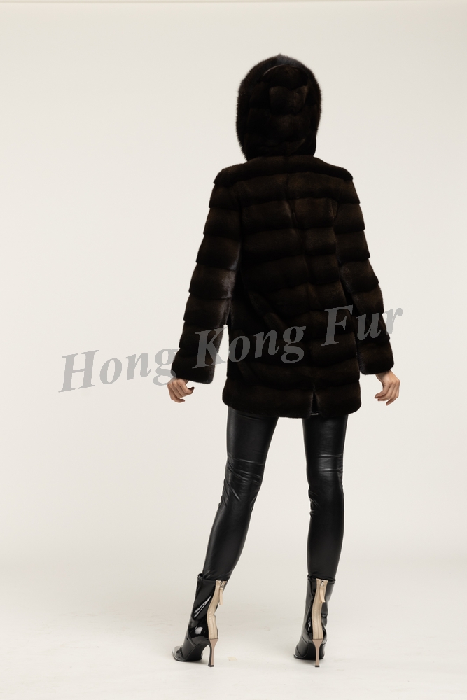 OLIVE GREEN F. MINK HALF SKIN HOR. JACKET WITH DOUBLE FUR HOOD/OLIVE GREEN SHADOW FOX HOOD TRIM