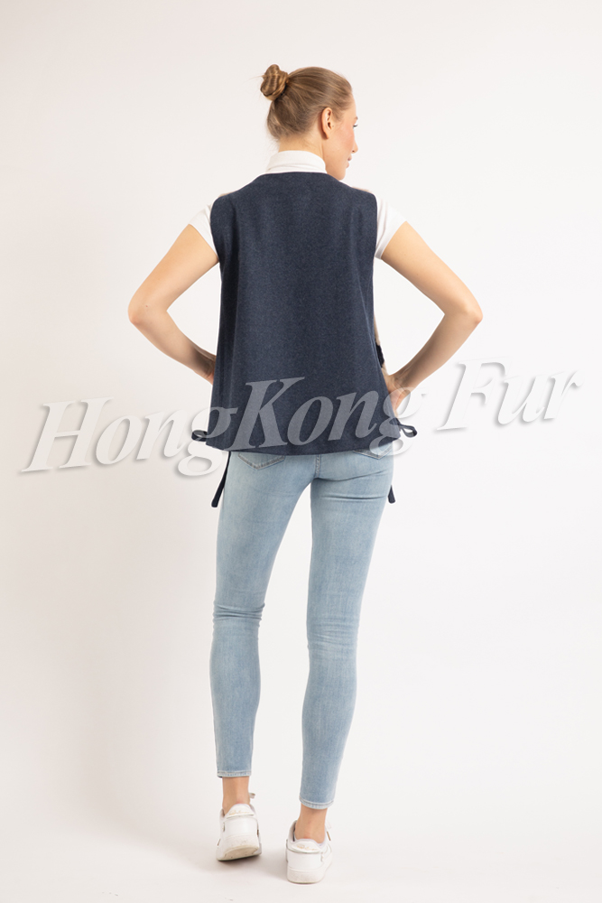 SAND BEIGE/ SCANBROWN/ NAVY MINK/ NAVY SHEARED MALE MINK INSERT VEST WITH NAVY WOOL BACK
