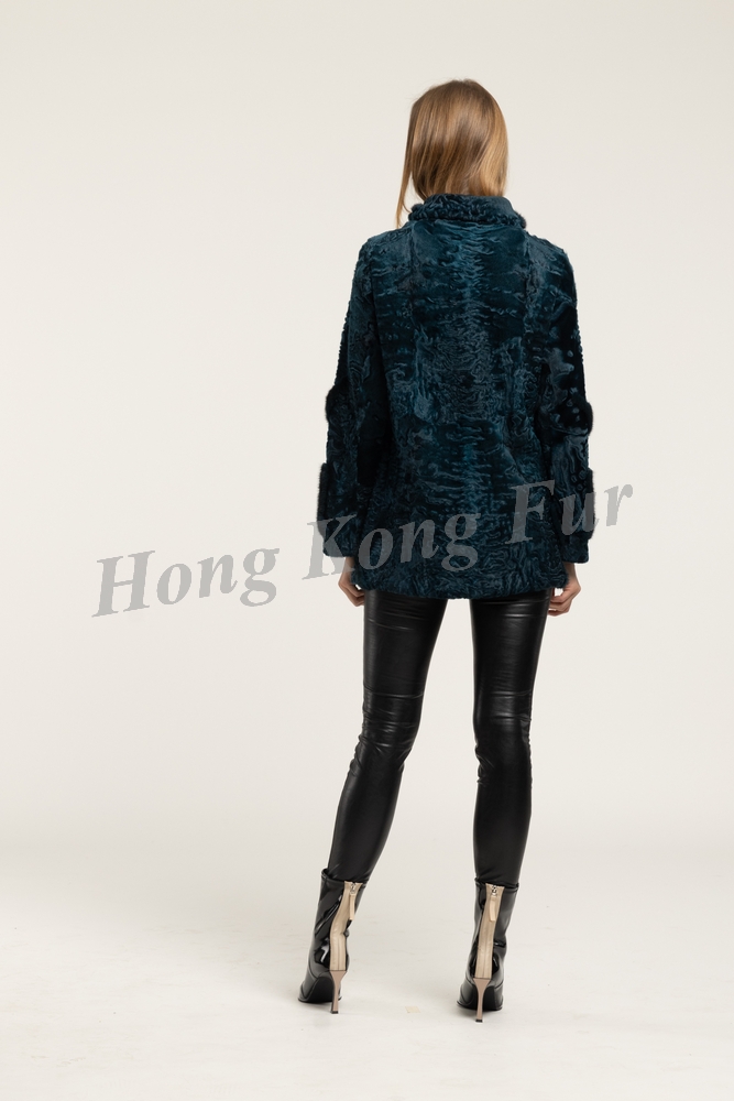 GREEN KARAKUL JACKET WITH GREEN F. MINK INSERT