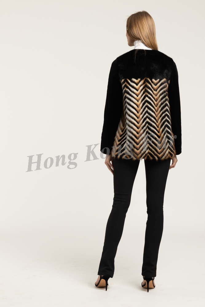 DYED BLACK M. MINK / BL. GOLD FITCH V-PATTERN JACKET WITH BLACK SH. MINK SLEEVE