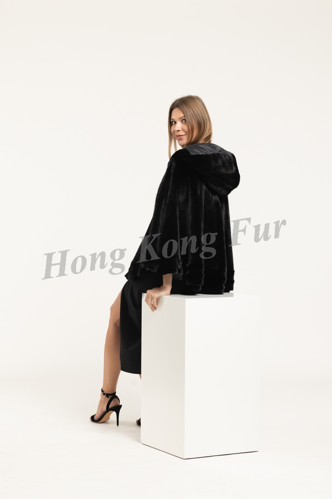 A.T. BLACK STAR MALE MINK PONCHO WITH HAIR UP DOWN BOTTOM/SINGLE FUR THIN DOWN HOOD/ZIP FRONT