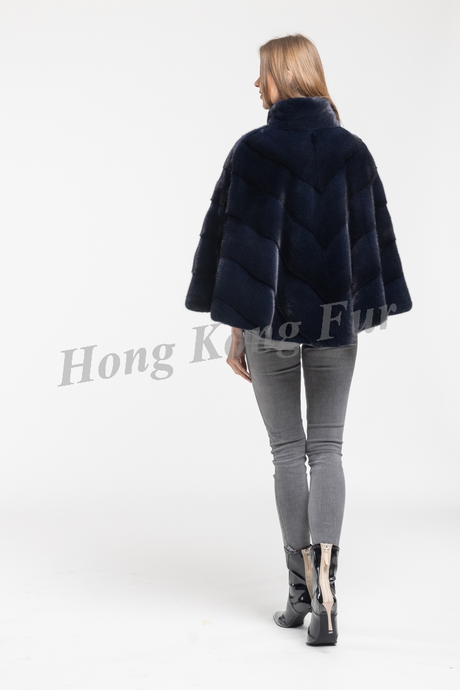 R905 NAVY MALE MINK HALF SKIN V SHAPE PONCHO WITH SIDE ZIPPER