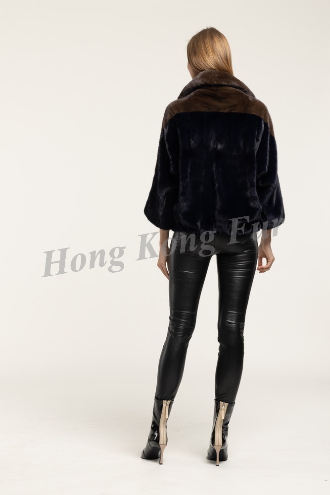 P21 NAVY/TP BROWN FEMALE MINK JACKET WITH ZIP FRONT